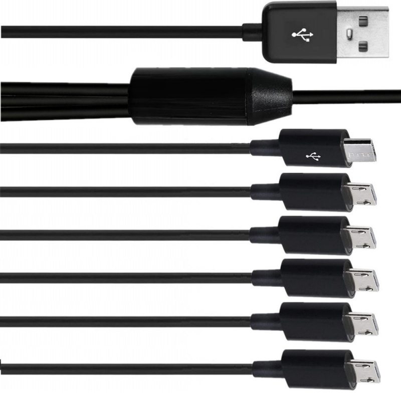 Applicable Scope: 1. Micro USB interface, suitable for most smartphones on the market that use micro USB interfaces, such as Huawei, Samsung, Xiaomi, ZTE, Meizu, etc., as well as automotive devices and Bluetooth devices that use micro USB interfaces. 2. 6 micro USB interfaces design, which solves the problem of some customers needing to charge 4 micro USB interface devices simultaneously, making it convenient to charge multiple devices at the same time. 3. Lightweight and aesthetically pleasing, easy to carry. The durable, flexible, and environmentally friendly cable jacket protects the core wires from twisting and tangling. Note: Only one micro USB data cable with a transfer mark supports simultaneous data transfer and charging, while the other 5 micro USB cables are only for charging and have no data transfer function.