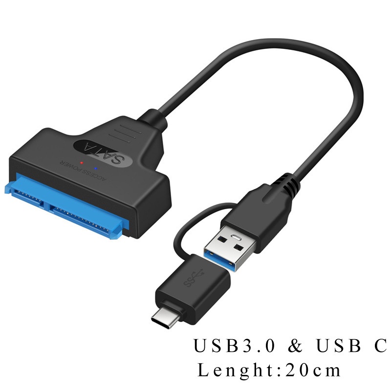SATA 2-in-1 USB 3.0 Type-C Adapter Cable for Hard Drives and Optical Drives, 2.5/3.5 Inch, with LED Indicator