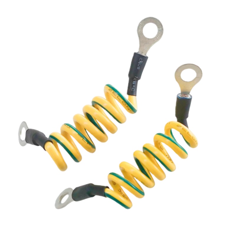 Yellow-green PV Solar Energy Spring Cable, Slingshot Cable, Grounding Cable / Energy Storage Cable with RV5.5 Terminals on Both Ends, Specialized for Energy Storage Applications