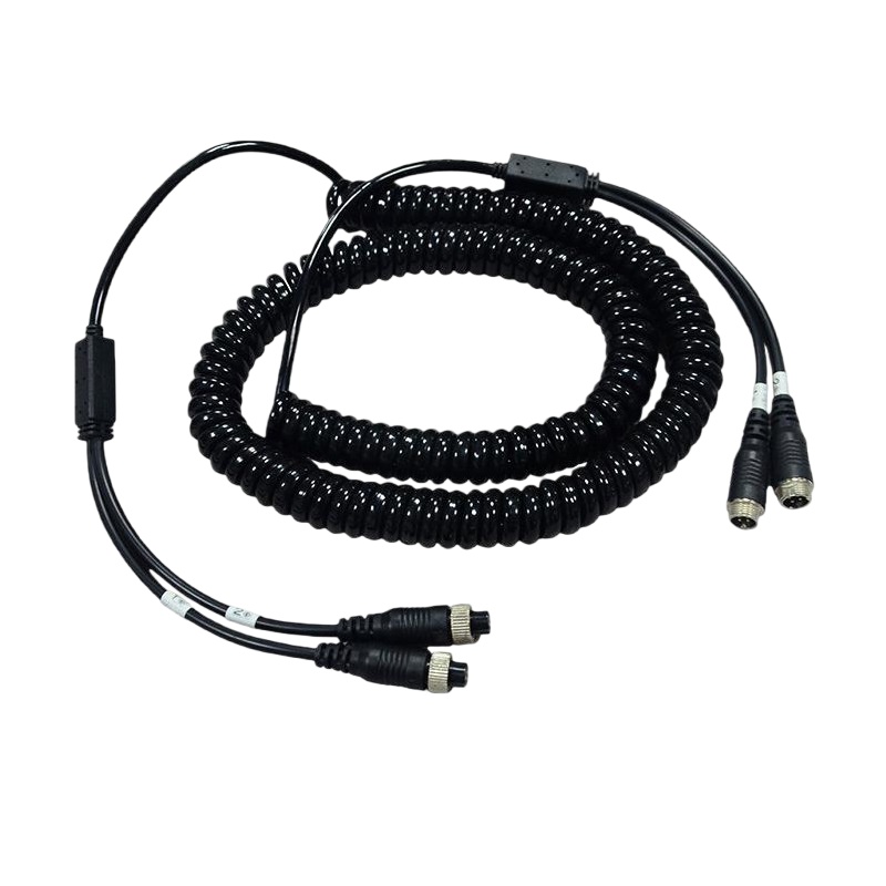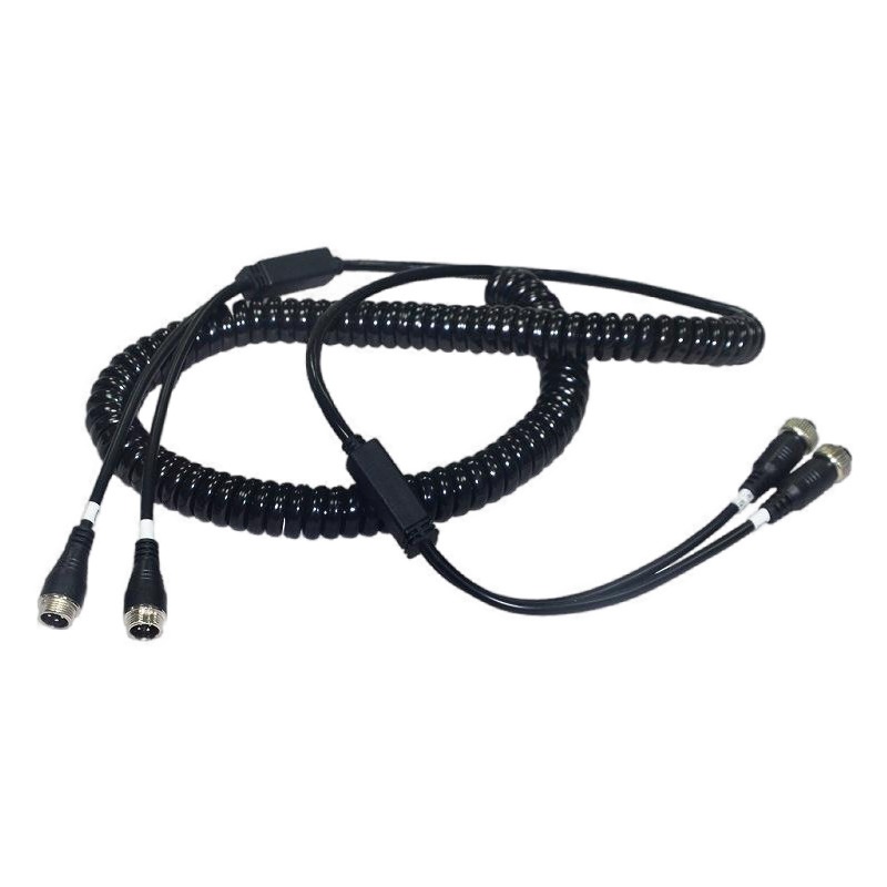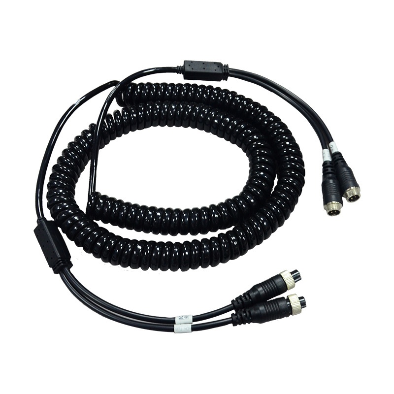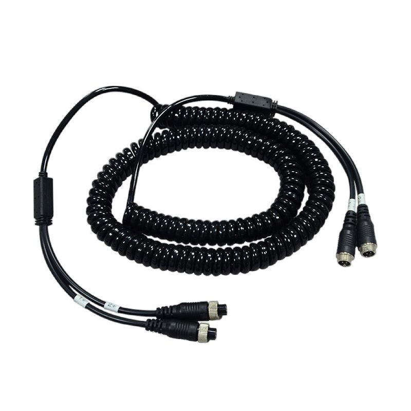 Dual-Channel Truck Camera Connection Cable, Vehicle-Mounted Spring Cable with Double Shielding for Signal Transmission, Flame-Retardant Surveillance Cable