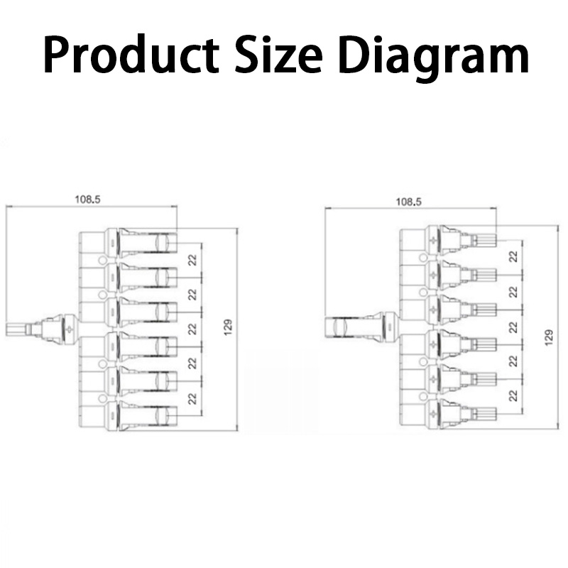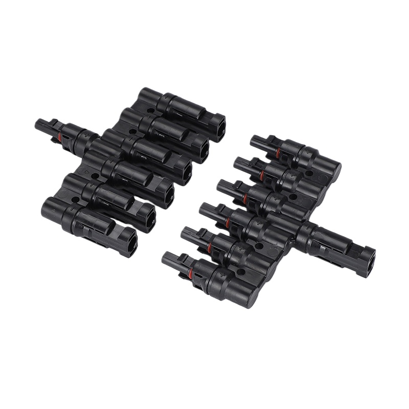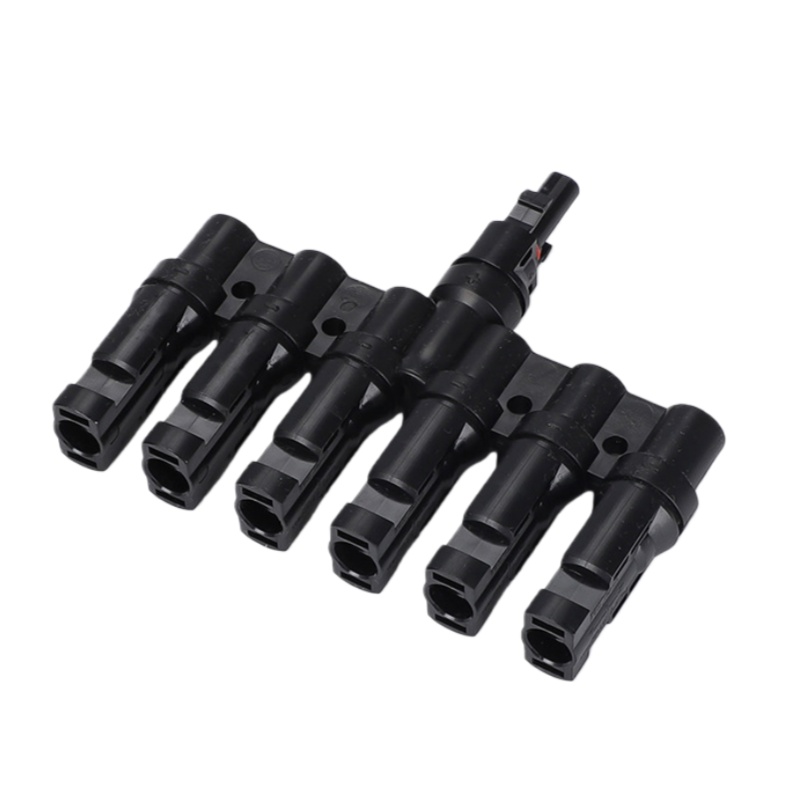 T-Type 6-Way 1000V MC4 PV Connector, Solar Panel Parallel Adapter, 1-to-4 Splitter Plug