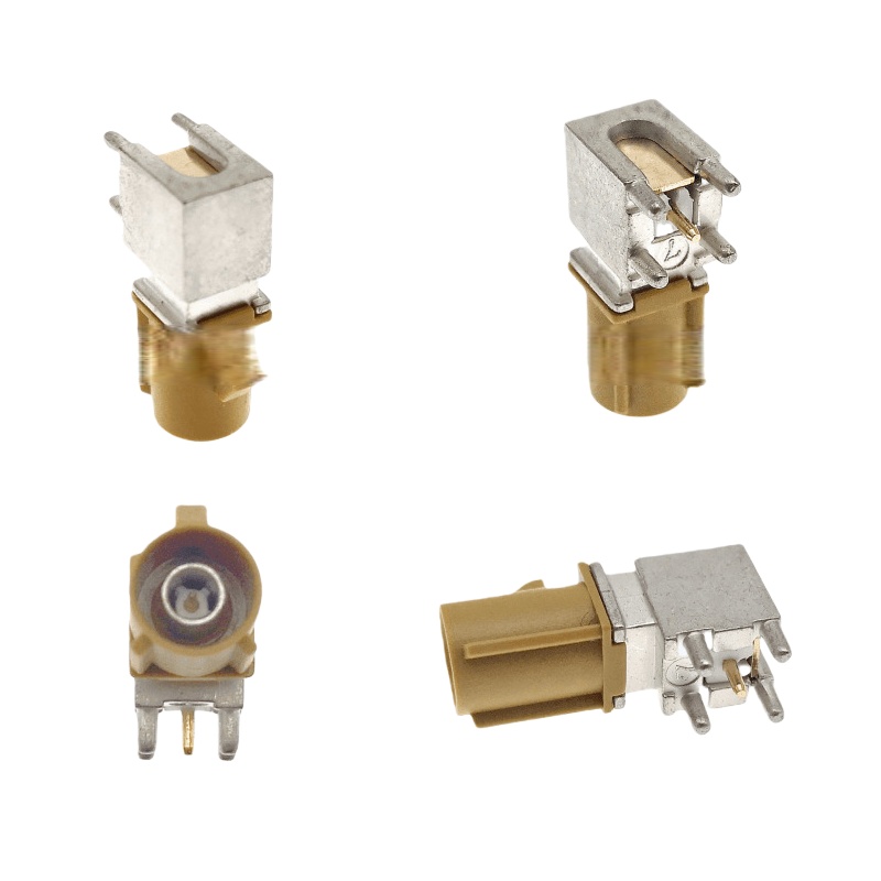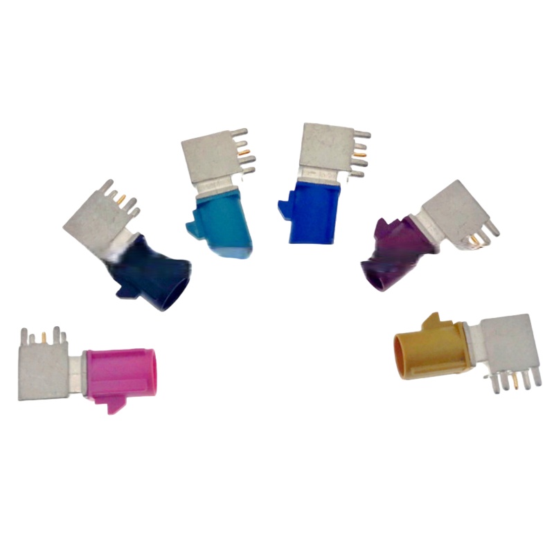 Automotive Fakra-SMB Type C Male Connector, 90° Angled PCB Mount, On-Board GPS Plug