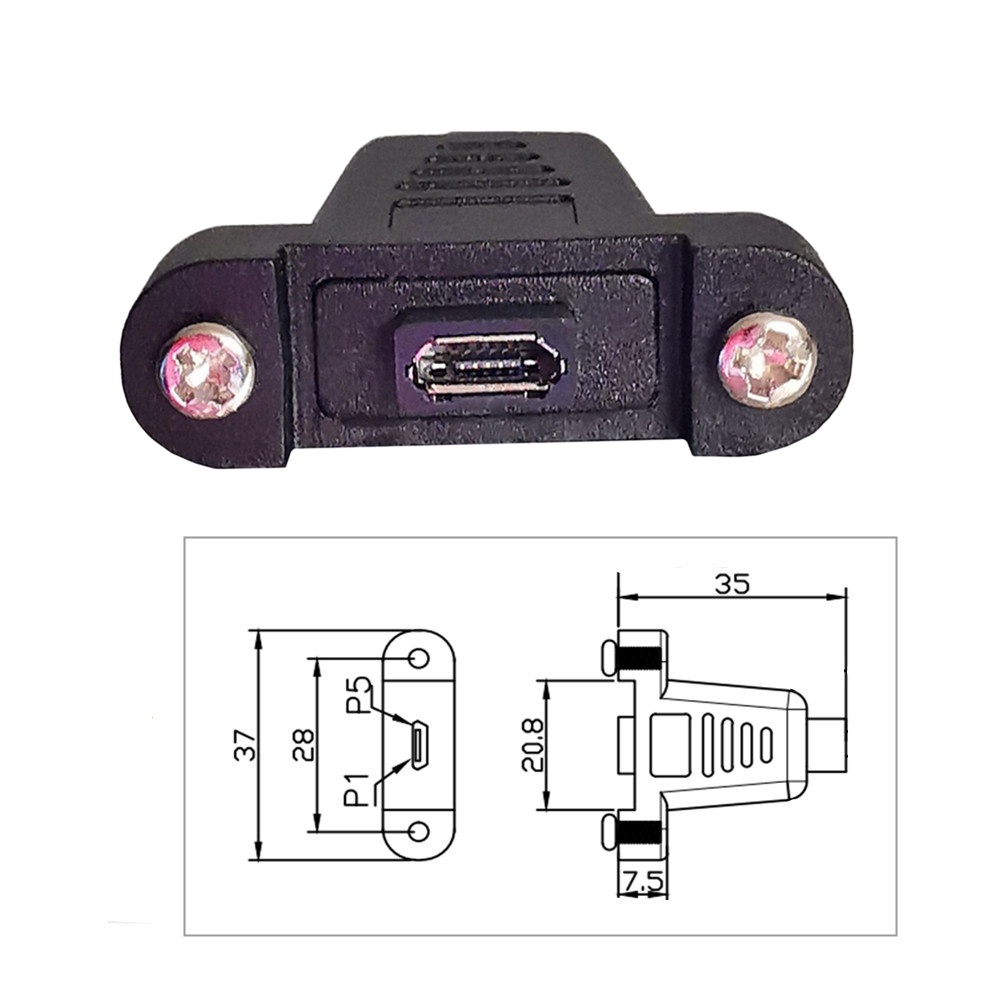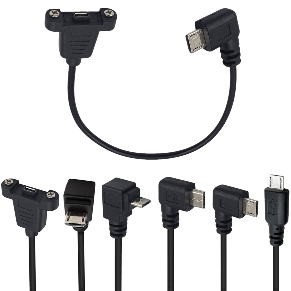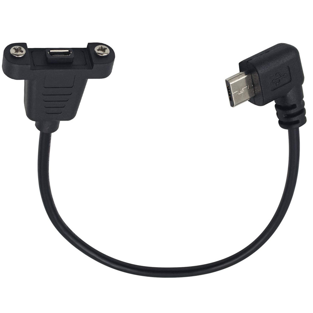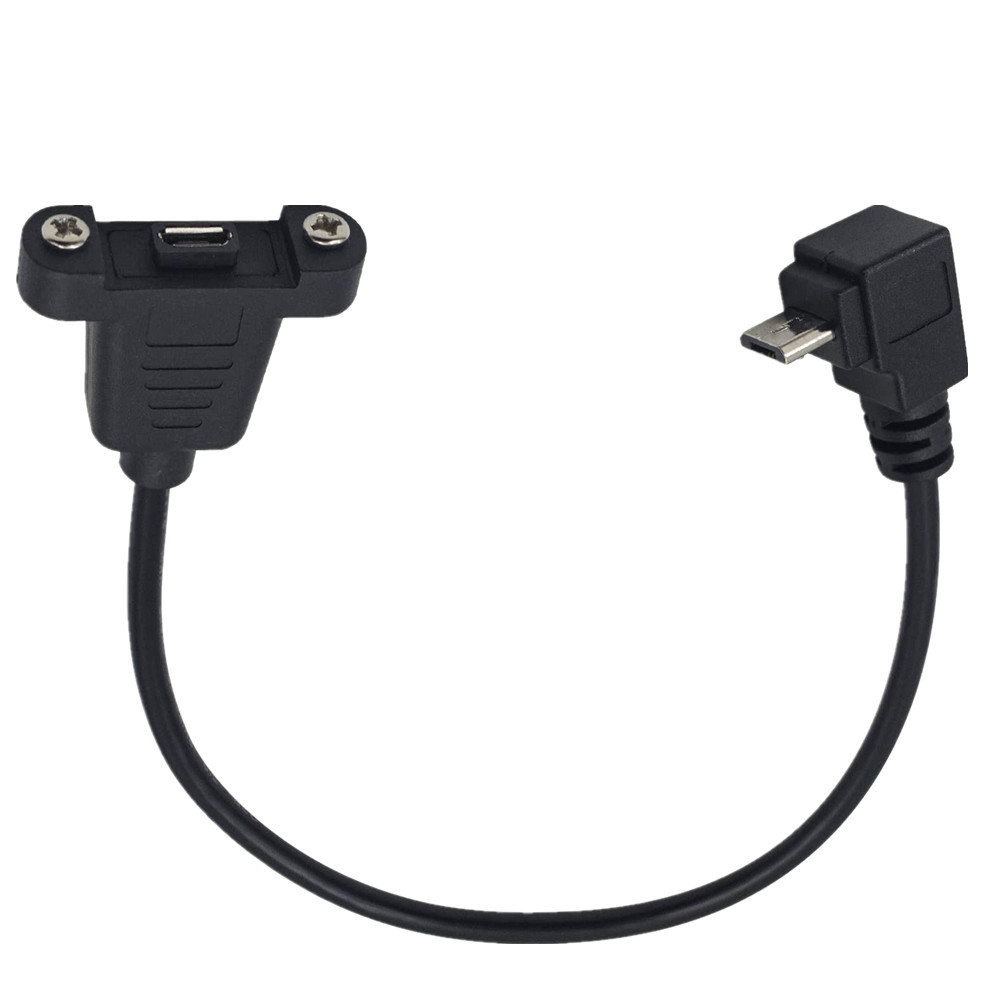 90° Angled with Screw Fixable Baffle and Mounting Ears, USB 2.0 Micro 5P Male to Female Cable