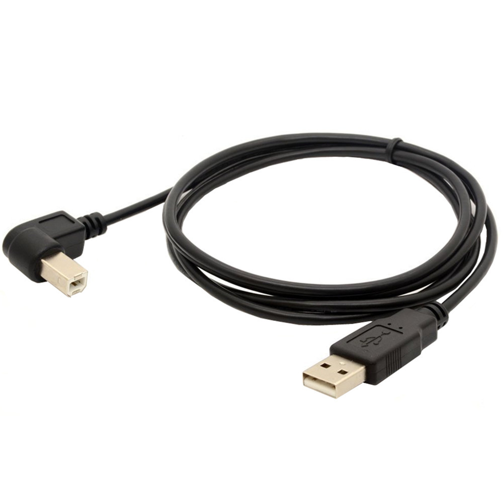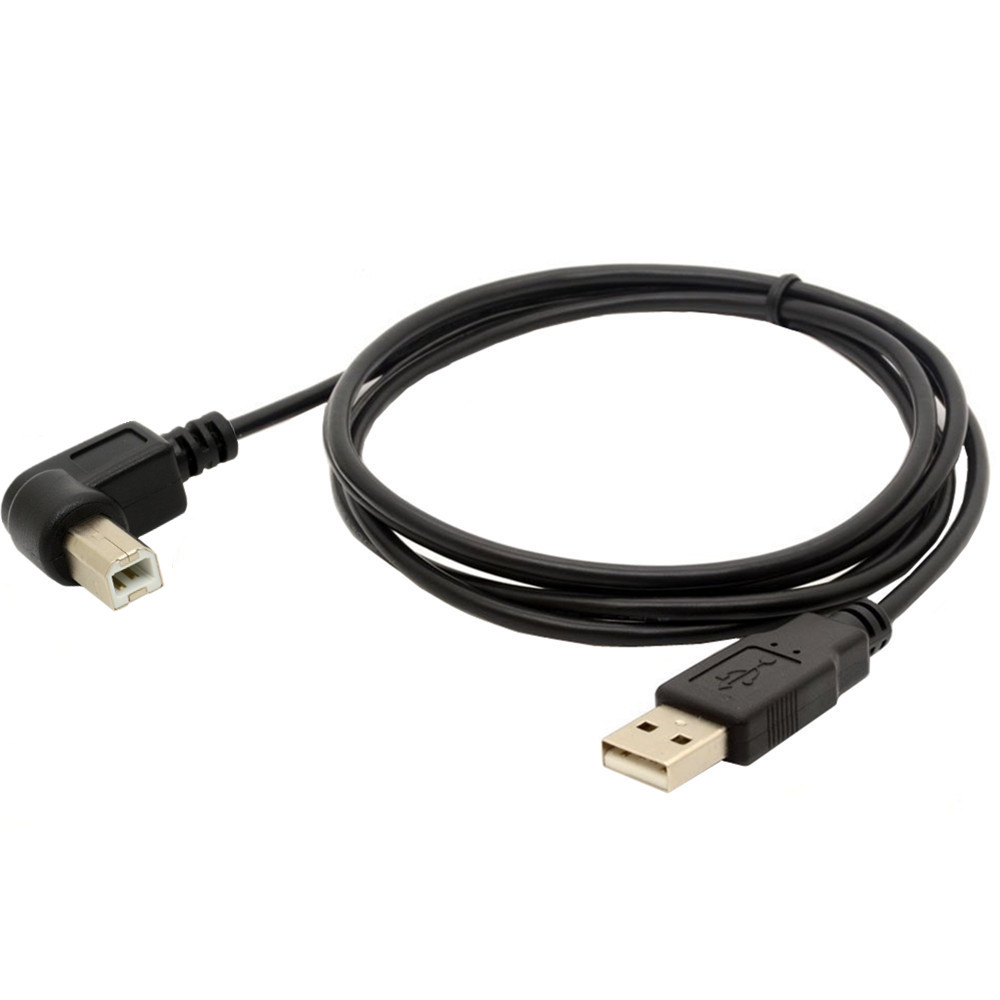 USB Cable, USB 2.0 Printer Cable, Printer Data Cable, AM to BM 90° Elbow, 1.5m