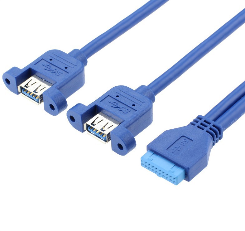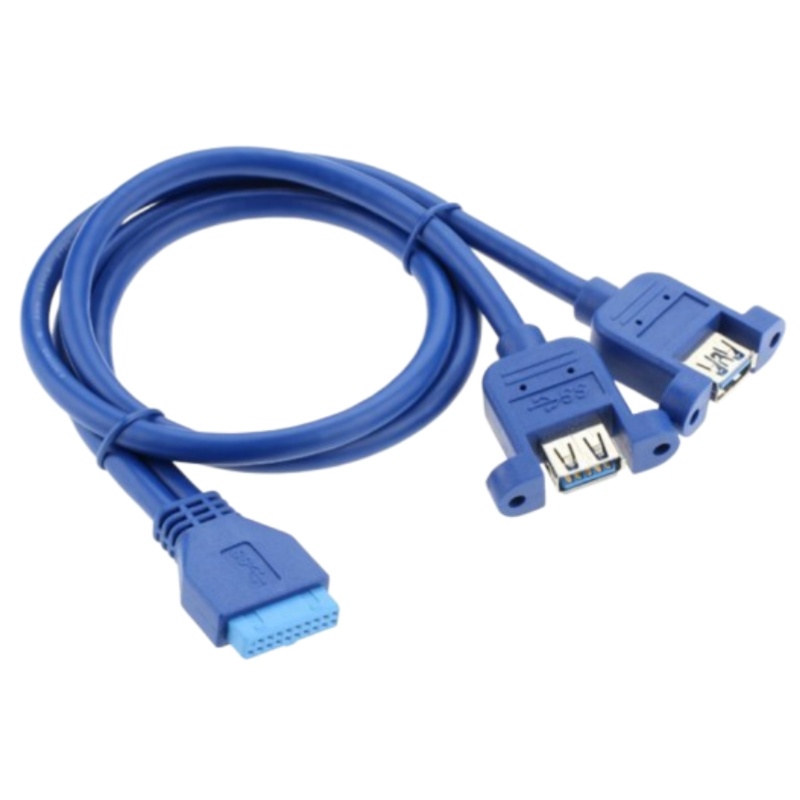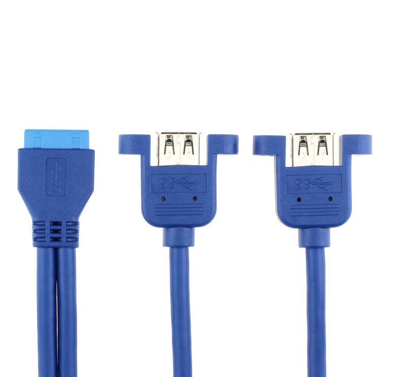 USB 3.0 Cable with Mounting Ears, Motherboard 20P to Dual USB 3.0 Baffle Cable with Ears, 0.5m