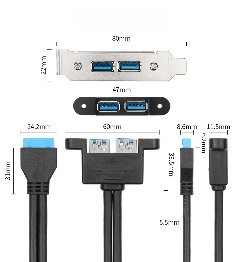 USB 3.0 Dual-Port Shield Plate: Utilizes the 20-pin USB 3.0 interface on the motherboard inside the case (note: not all motherboards have this 20-pin interface; please confirm if your motherboard has a 20-pin USB 3.0 interface). No driver installation required; plug-and-play.