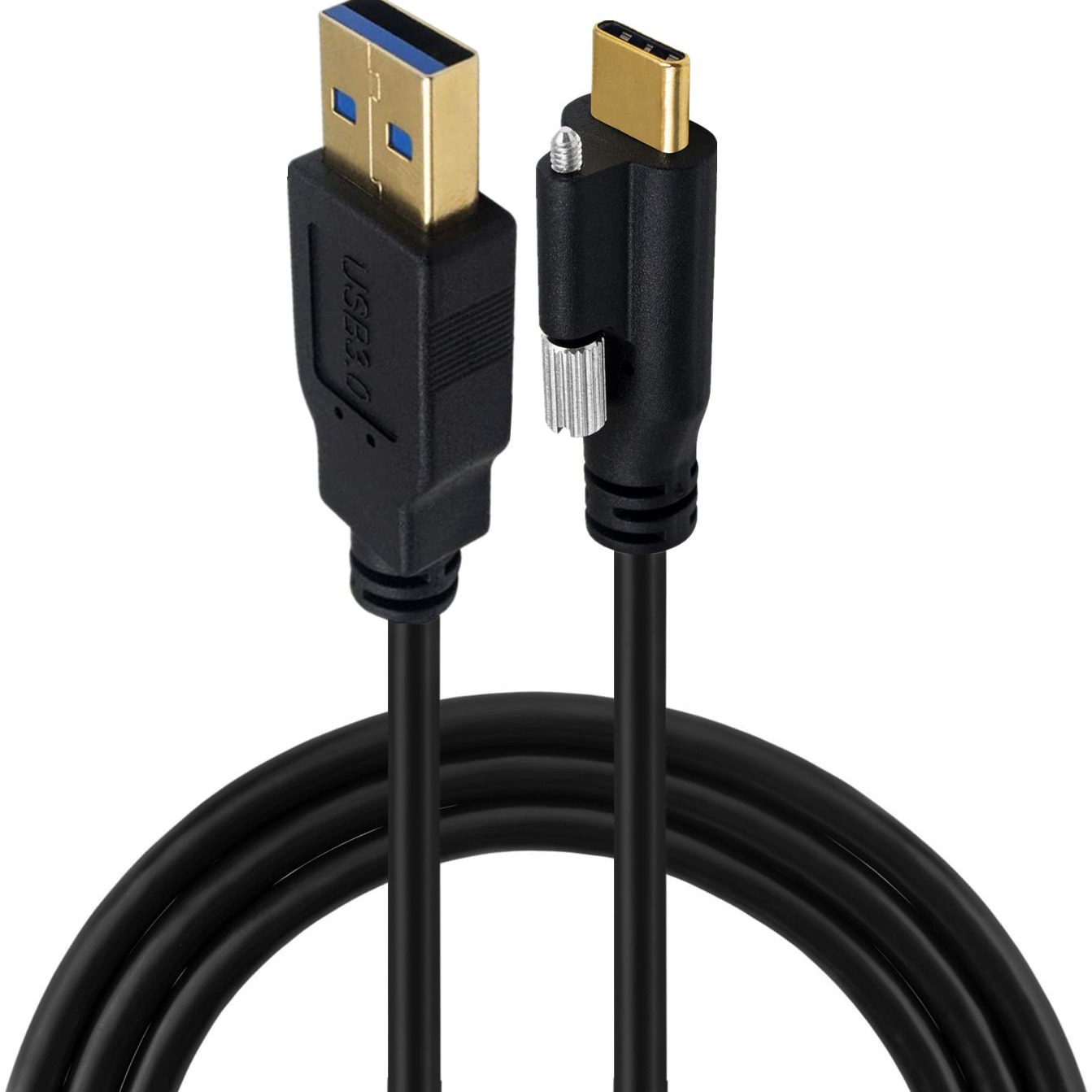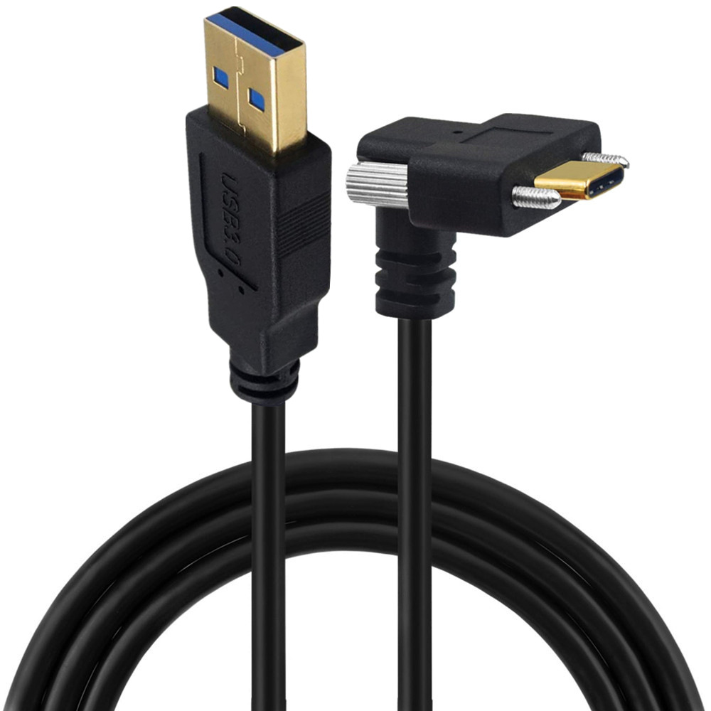 Gold-plated USB 3.1 Type-C to USB 3.0 Male Elbow Data Cable with Screws, Lock Panel for Industrial Camera