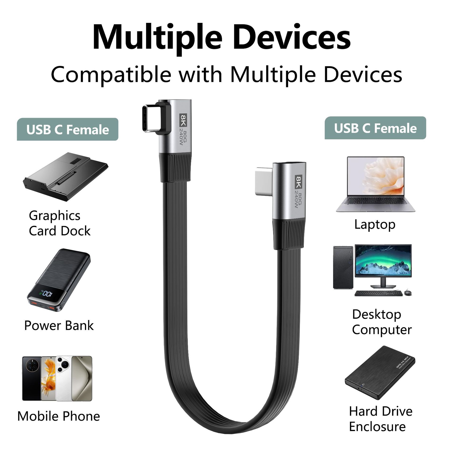 Usage: Connect devices to the computer via the extension cable. The 80Gbps ultra-high-speed transfer can complete a 10GB file in about 1 second, avoiding lag and waiting. With 8K video output capability, it can also directly connect to professional monitors for material preview.