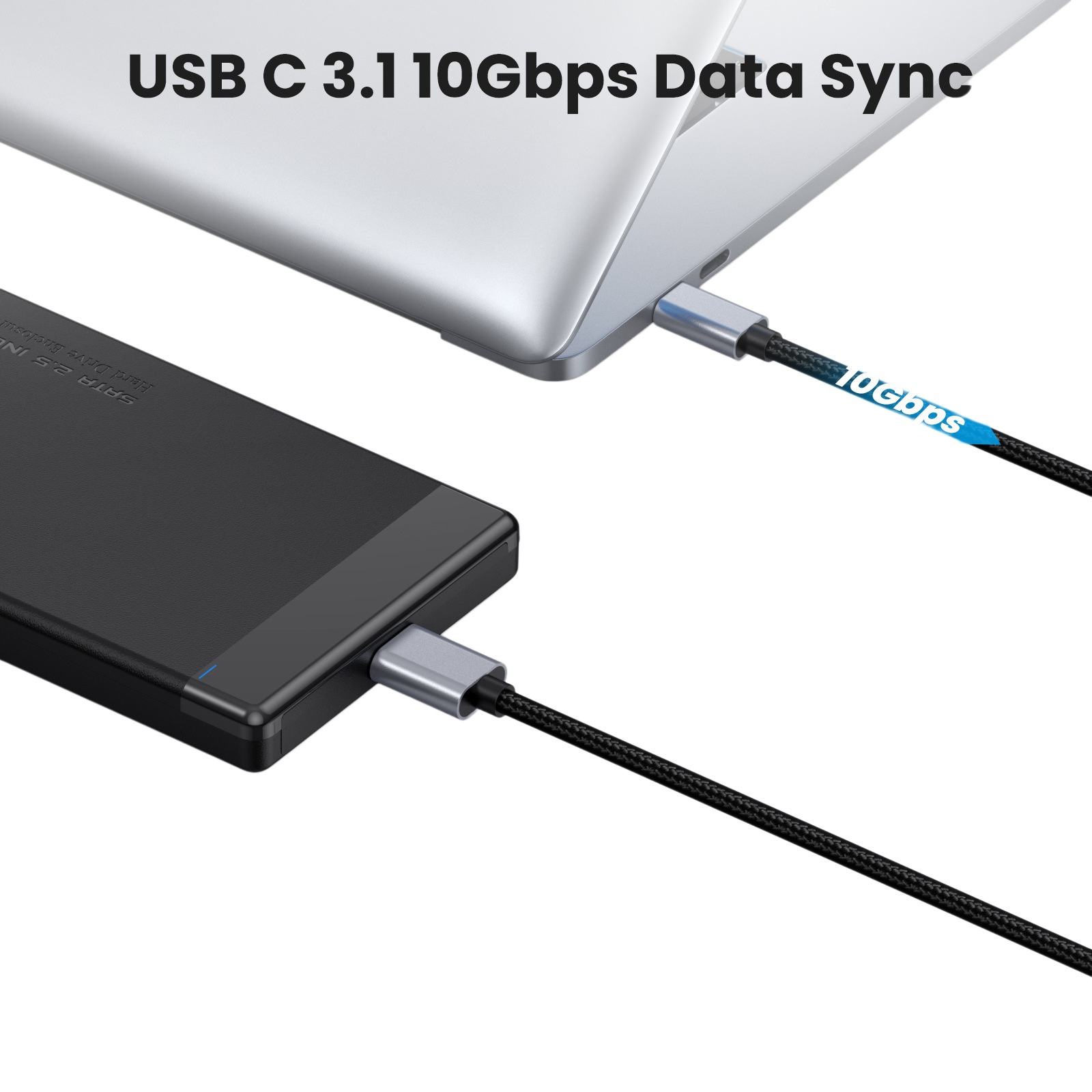 USB Type-C to Micro B Cable 5Gbps Data Transfer 5V 3A Metal Shell Cotton Braided for Hard Drive Computer